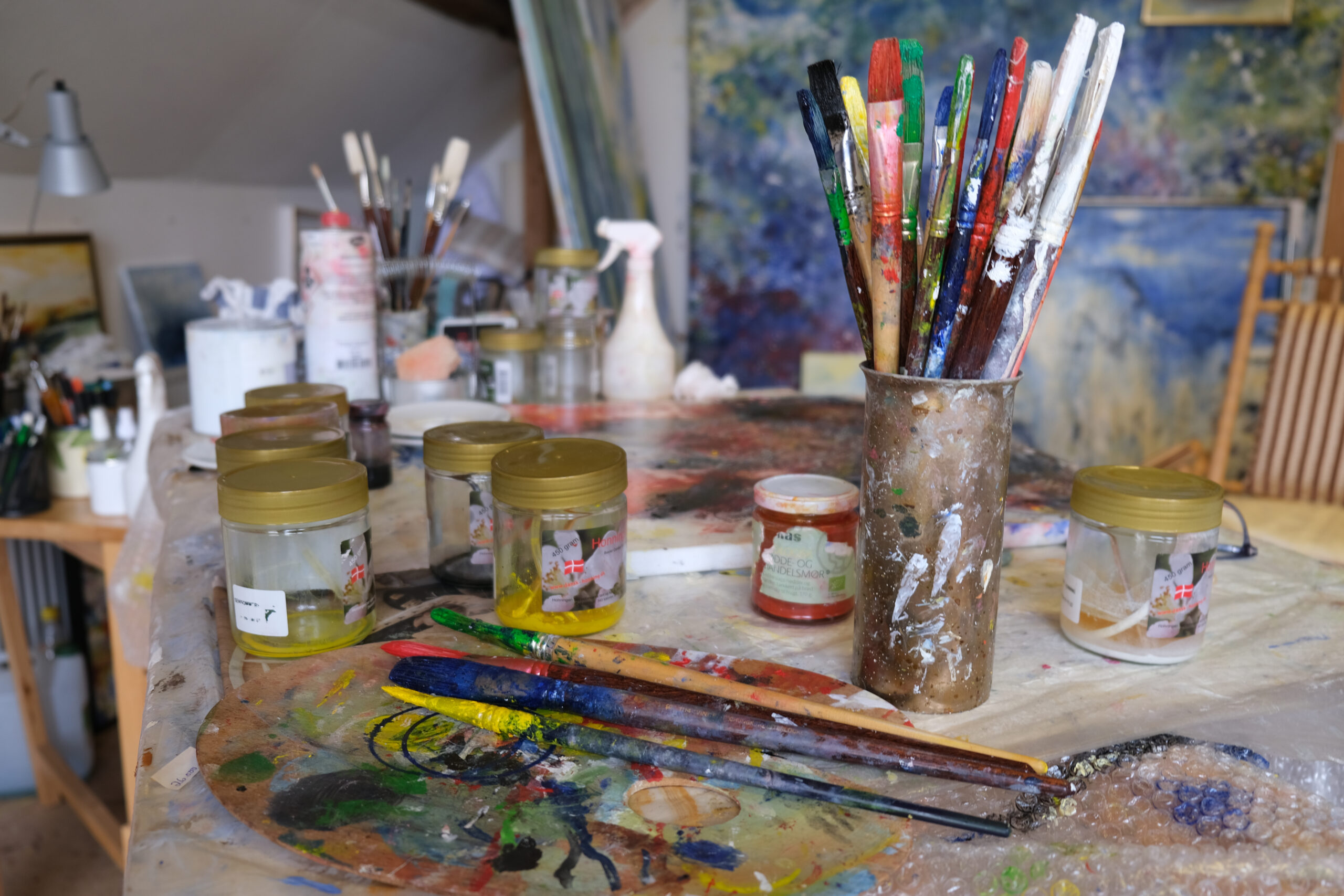 arbejdende værksted i Tinggalleriet hos Ebeltoft Kunstforening på Torvet i Ebeltoft.
